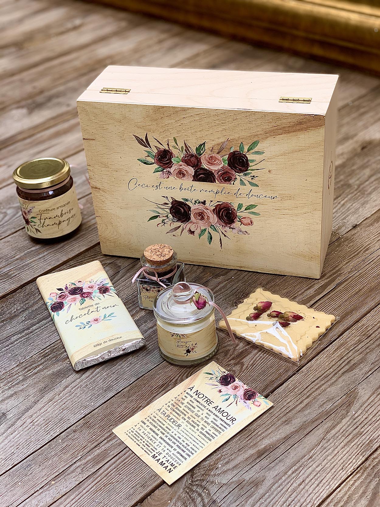 Nos coffrets cadeaux sont une nouvelle idée cadeau pour assurer un moment rempli d’émotions. Nous vous avons préparé plusieurs box mais vous pouvez bien sûr en composer vous-même si le cœur vous en dit! Tendresse, romantique, gourmande, super mamie, autant de thèmes que de mamies différentes! Dans chacun de nos coffrets, ajoutez votre petit mot d’amour pour faire battre son cœur.